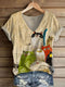 Women's Cute Cat Art Print Casual Long Sleeve V-Neck Top